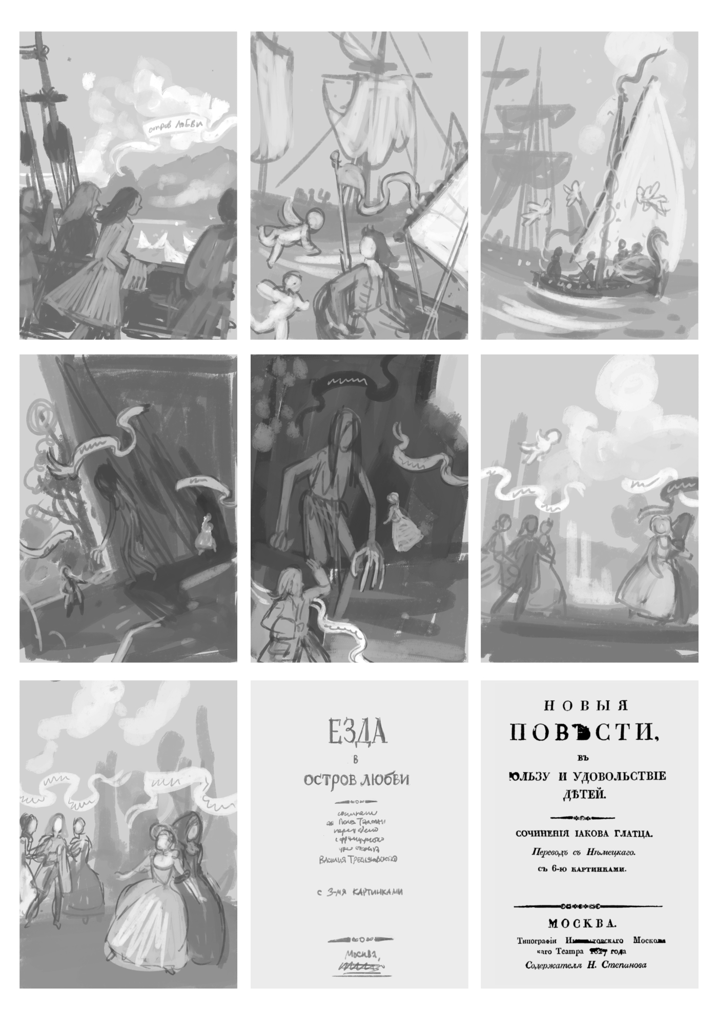 Были и интересные одиночные работы: графика для перевода Hypnerotomachia Poliphili («Любовное борение во сне Полифила») и попытки сделать полноценные иллюстрации к «Езде в остров любви» (стоило бы это воскресить).